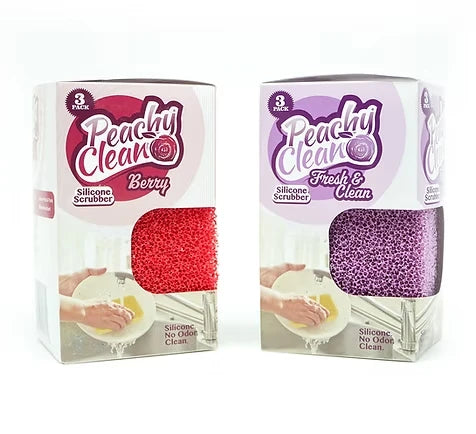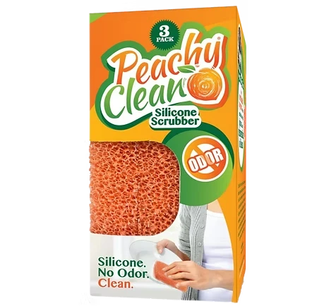 Peachy Clean® is the world’s only silicone dish scrubber, perfect for everyday kitchen use. It is designed to provide long lasting resistance to odors caused by bacteria, mold, and mildew. It is fast drying to prevent a moist environment that may facilitate bacteria, mold, and mildew growth. Peachy Clean® is designed to stay cleaner and be easier to clean than traditional products. Simply put, it’s just not as gross.